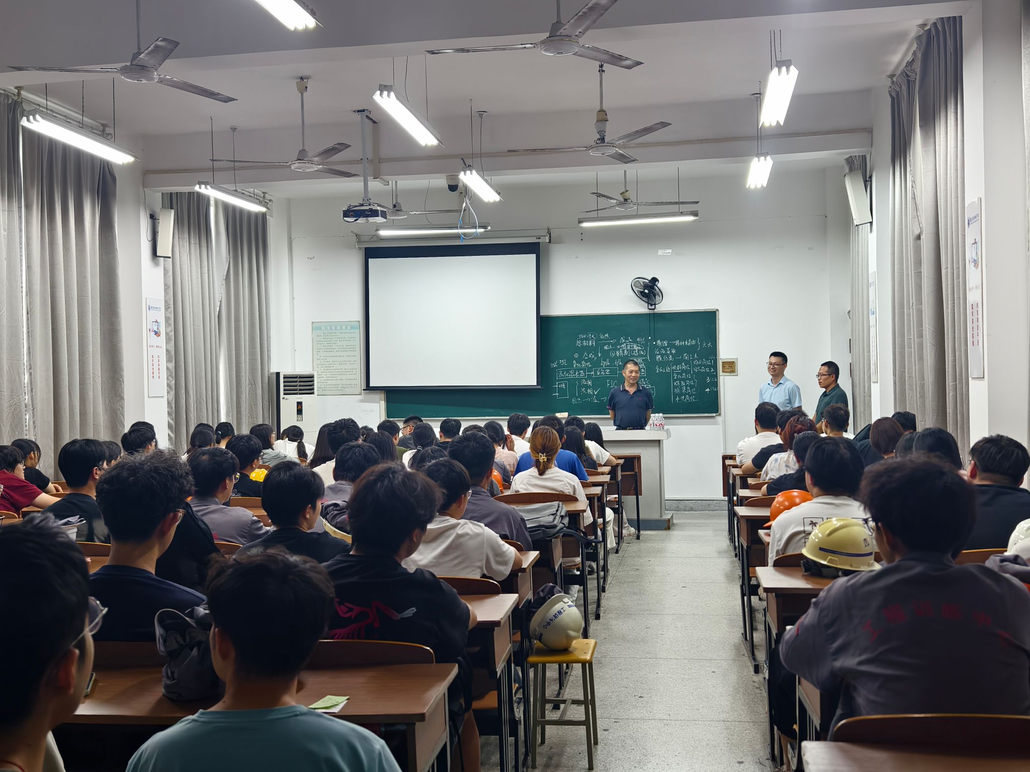 黄树桥一行深入实习场地,在实训车间、实验室等区域仔细了解了实训设备配置、操作流程规范及学生实操情况,并与实训中心指导教师亲切交流,详细询问了学生实习任务安排、技能培养重点及阶段性学习成果。在实习学生见面会上,黄树桥鼓励实习学生要积极适应实习环境,珍惜实践机会,在实操中积累经验、提升专业技能,为后续专业学习和职业发展奠定基础。叶龙强重点强调了实习期间的安全问题,要求学生务必严格遵守实习单位安全管理规定,规范操作实训设备,同时注意人身、财产及饮食安全,遇到问题及时与实习指导教师沟通。