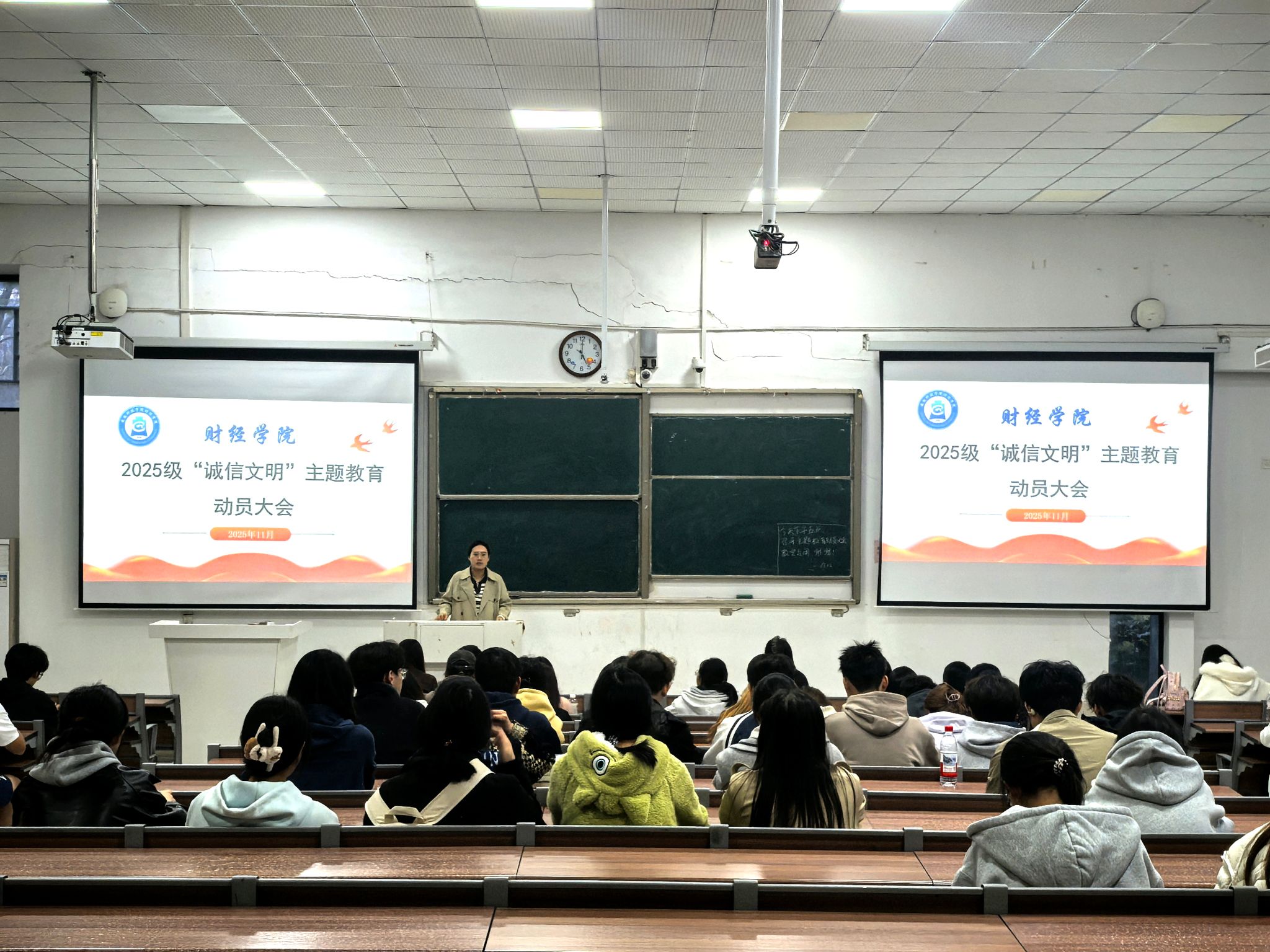 会议解读了《财经学院2025级“诚信文明”主题教育实施方案》并作出具体安排。新生代表作表态发言。