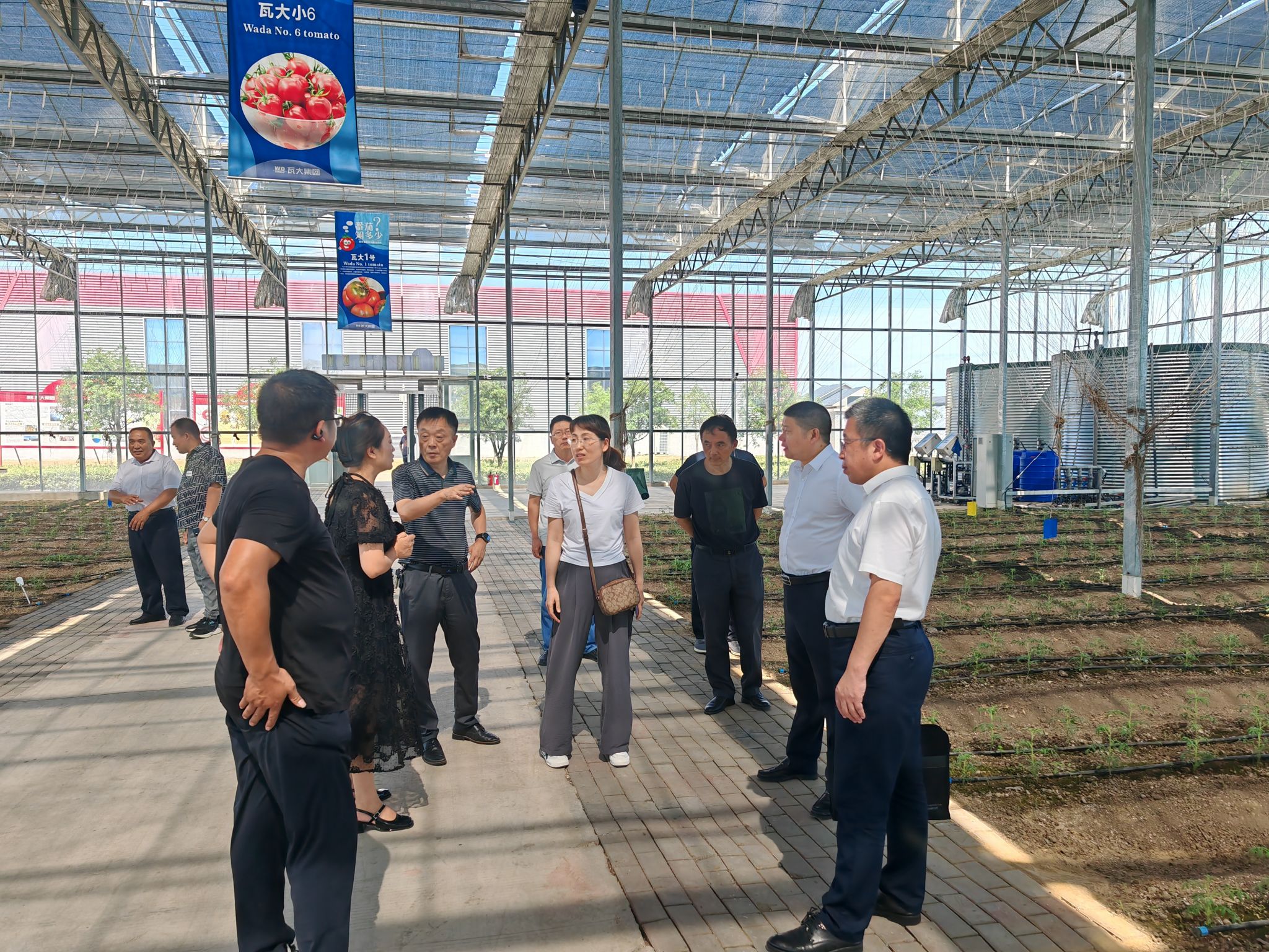 为进一步完善科技特派团精准服务,充分发挥其作用,促进帮扶地企业科学种植、创新能力提档升级,引进新品种,开发新领域,拓宽致富新渠道,7月31日,由农学院霍邱县蔬果产业优质高效发展科技特派团团长何克勤带领下,联合霍邱县科技局,与霍邱县泥小子生态农业种植专业合作社、六安地利万家现代农业科技有限公司、霍邱县乌龙镇仁涛种植家庭和霍邱县范圩村蔬菜种植专业合作社代表十余人,赴位于阜阳市颍东区的安徽瓦大现代农业科技有限公司(国家重点龙头和高新技术企业,以下简称“瓦大”)进行优质西红柿品种引种及销售渠道等相关内容考察学习。霍邱县科技局局长王鹏,副局长李怀东,农学院党委书记何世潮,党委副书记、院长崔广荣,党委副书记、纪委书记张轶辉,党政办副主任、就业联系人汪道兵等随行考察学习交流。