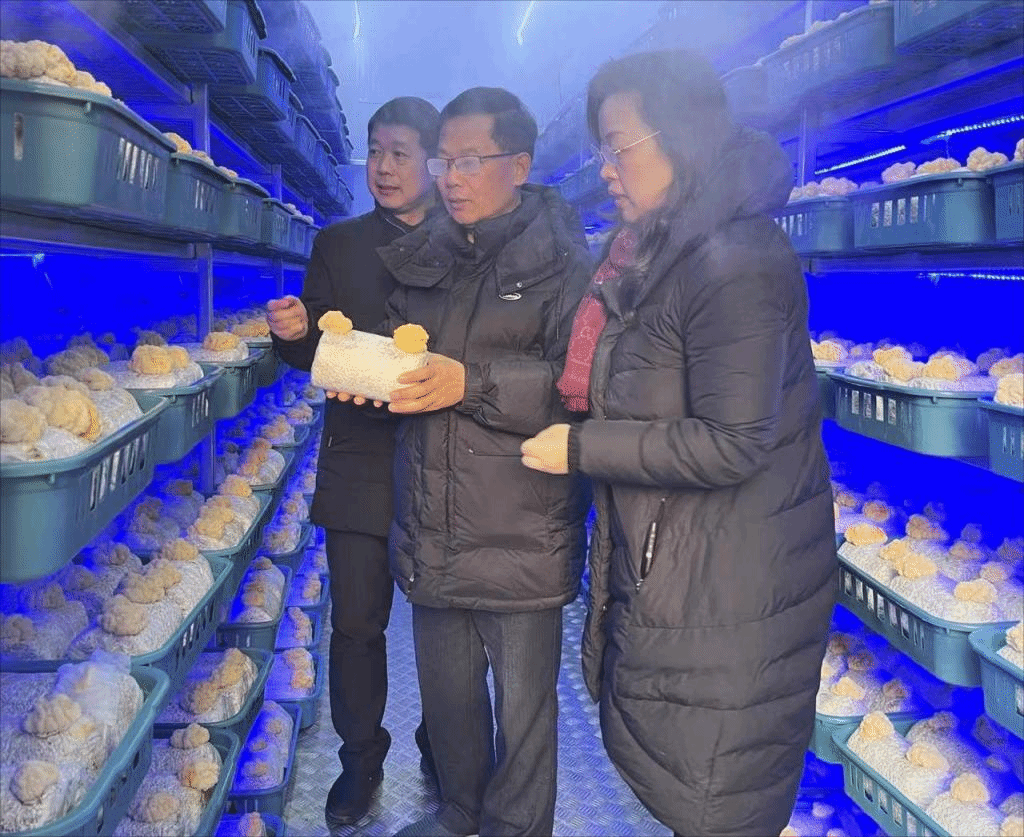 1月16日,农学院何华奇教授与生命与健康科学学院孙玉军教授、安徽科技学院创业大学生——安徽来一克实验科技有限公司总经理郭凯等到长丰县中国菌物谷考察食用菌智慧方舱项目。安徽省食用菌行业协会会长、玉隆农业高科技股份有限公司总经理常莹等陪同参观。