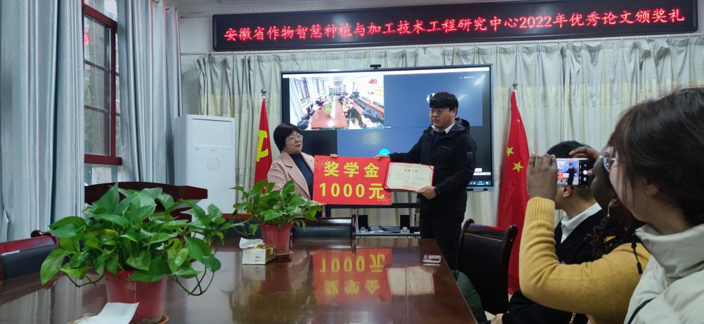 3月22日上午,安徽省作物智慧种植与加工技术工程研究中心2022年度优秀论文颁奖典礼在安徽科技学院农学院会议室举行。农学院副院长李文阳、安徽省作物智慧种植与加工技术工程研究中心主任任兰天、及部分团队成员邵庆勤、甄凤贤及课题组全体研究生参加了本次颁奖典礼。