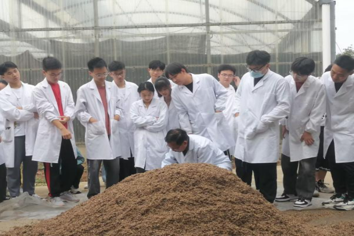 何华奇教授首先为同学们讲解种植蘑菇的相关知识,并教授学生培养基装袋、灭菌技巧。同学们热情满满、配合默契,经过大家不懈的努力,堆积如山的肥料终于全部装袋成功了。劳动实践中,何华奇教授还带领同学们采摘蘑菇,观察蘑菇的生长环境,更加深入了解了蘑菇生长习性。何华奇还就同学们关心的蘑菇种植问题进行了解答交流。