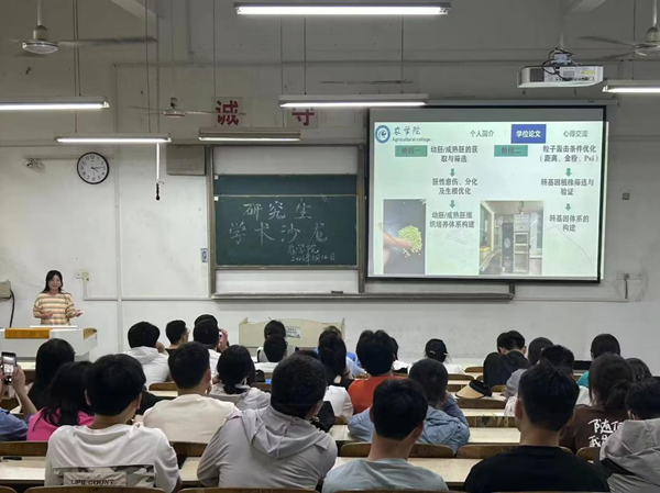 本期学术沙龙交流报告会,邀请2020级农艺与种业研究生梁缘、张雅婷分别分享了科研经历、成果、科研心得。