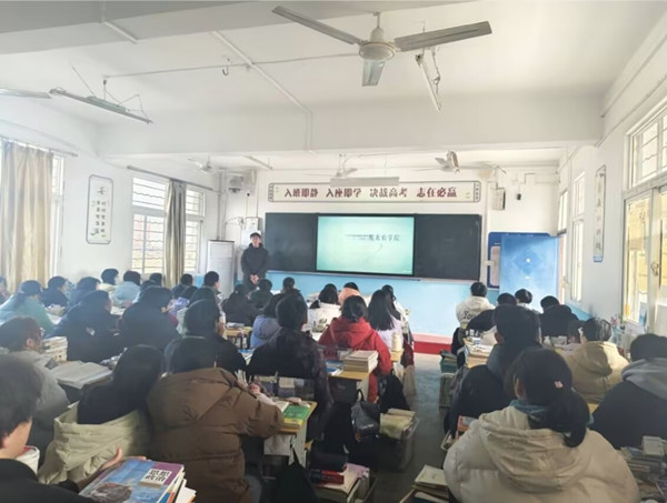 回母校的第一站,团队成员拜访了高中时代的班主任和任课老师。在亲切的交流中,他们分享了大学的学习和生活,让老师们看到了他们的成长和进步。随后,团队成员在班主任老师的协助下,走进高三班级,播放了安徽科技学院招生宣传片,并就安徽科技学院的概况、学科建设、校园生活以及升学就业等关键信息一一呈现,让高中生们对安徽科技学院有了更全面的了解。最令人难忘的环节是团队成员与学弟学妹们的互动交流。团队成员耐心解答了关于大学生活、专业选择、未来规划等方面的问题,用亲身经历和感悟为即将面对人生重要抉择的高中生们提供了宝贵的建议。