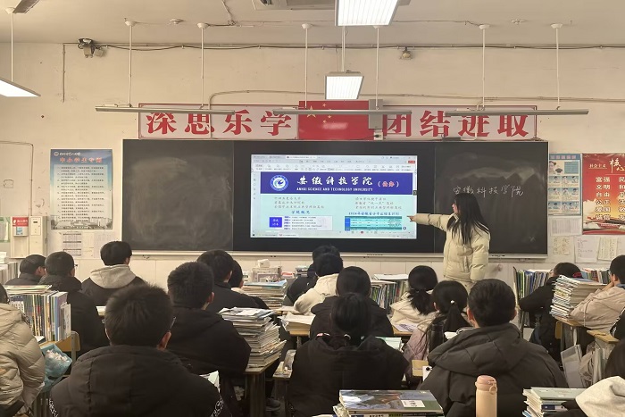 当日,两人带着宣传材料回校,先向高中班主任呈递安徽科技学院给池州第八中学的喜报,汇报大学学习与成长情况。随后,在班主任陪同下,他们走进高二、高三教室,借多媒体介绍安徽科技学院的历史、理念、专业、师资等,分享大学生活。互动环节中,耐心解答学弟学妹们关于专业选择、课程难度、转专业政策的疑问,还分享高考备考、志愿填报经验,鼓励大家报考安徽科技学院。