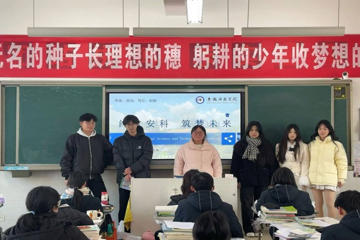 在高中学校的安排下,通过ppt宣讲学子们向学弟学妹们分享了自己在安徽科技学院的成长故事。从参与实践课程的新鲜感,到社团活动里结交志同道合朋友的欢乐,全方位展示了大学的多元魅力。他们生动的讲述,让台下的学弟学妹们对大学生活充满了向往。谈及安徽科技学院的学科专业,着重介绍了自己目前的园艺专业,详细阐述专业课程、就业前景,帮助同学们了解专业特色。互动环节,同学们踊跃提问,涉及高考备考、专业选择等。团队成员分享了自己备战高考的经验,从学习方法、时间管理到心态调整,毫无保留地将自己的“秘籍”传授给学弟学妹们,同时在现场还发放了自带的精美书签、明信片。