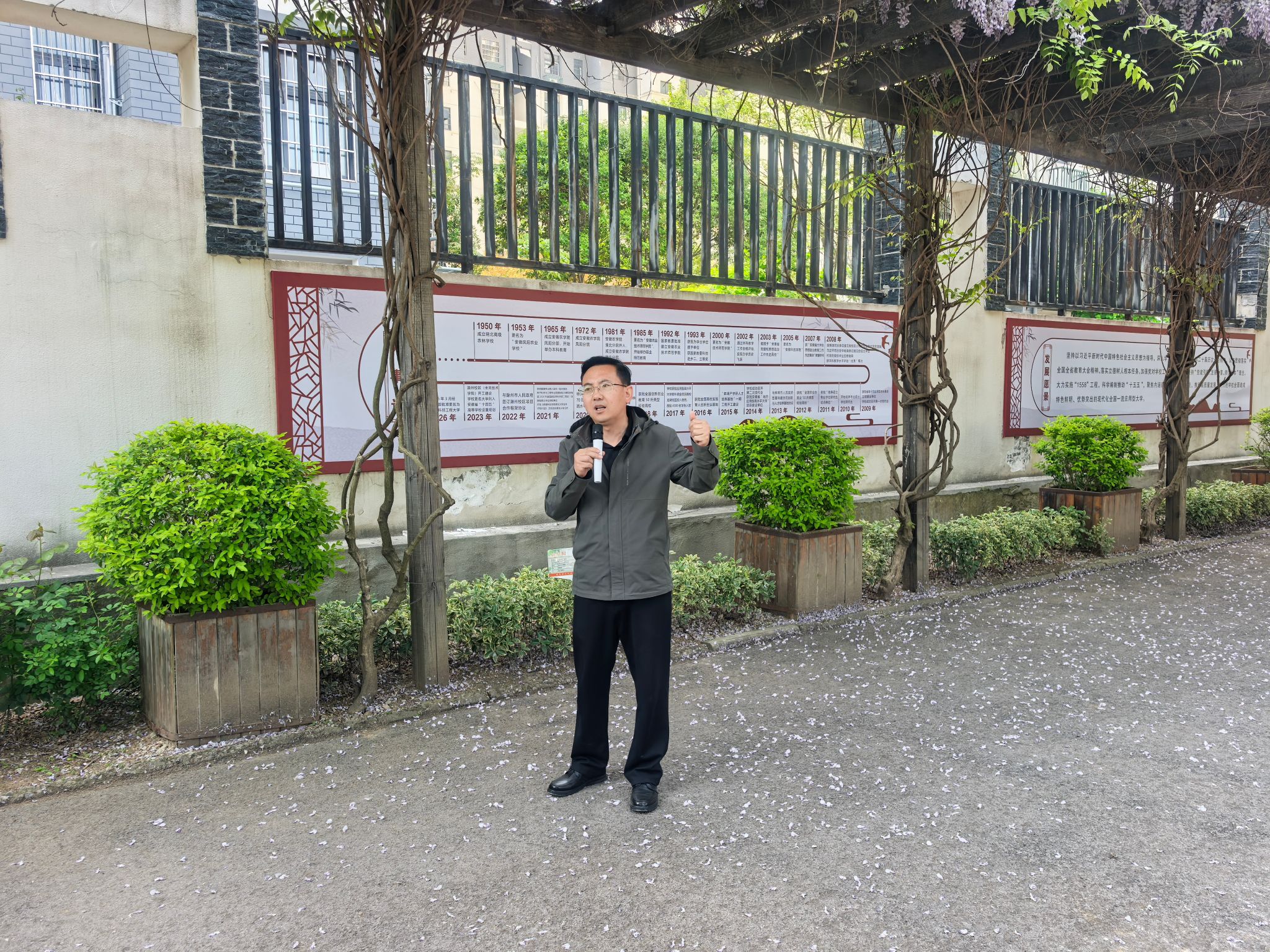 农学院现代农业实习实训中心主任郑甲成和农学院团委书记杨孝延带领同学们参观了农耕文化墙,向同学们详细介绍了农耕文明脉络,让大家在图文与实物中感受农耕文化的深厚底蕴,体会从传统耕作到现代农业的时代变迁。