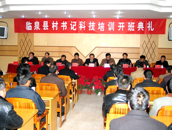 12月11日下午,临泉县村支书科技培训班开班典礼在我校图书馆多功能举行,临泉县委副书记汤志、副县长张凤国及县扶贫办领导,我校沈太基院长、刘朝臣副院长、校党委委员、继续教育学院院长张国义及科研处、校办公室和相关二级学院领导及部分专家教授等出席了开班典礼。参加培训班开班典礼的学员有临泉县30多位村支书和凤阳县临淮镇7位村支书。