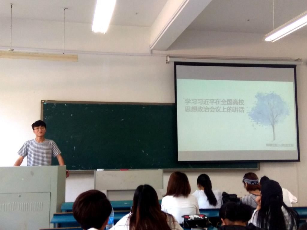 首先,团支书时梦甜向大家简述习近平总书记的讲话内容,并指出习近平总书记强调把思想政治工作贯穿教育教学全过程,教育强则国家强。接着,同学们在组织下展开了激烈的讨论并积极主动上台谈感想。随后,班长方明旺终结指出习近平总书记重要讲话从全局和战略角度,深刻回答了事关高等教育事业发展和高校思想政治工作的一系列重大问题,具有很强的政治性、思想性和针对性,对于办好中国特色社会主义大学具有十分重要的意义。我们大学生应积极关注时政,跟随社会主义脚步,努力学习报效祖国。