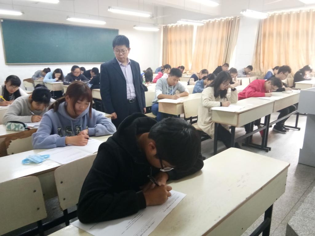10月21日下午1点,《学生手册》考试在求知楼的七个教室准时开始,监考人员由学生会干部和新生班级的班助担任。人文学院党总支副书记王伟、2017级新生辅导员曹珊珊亲临考场进行巡考。
