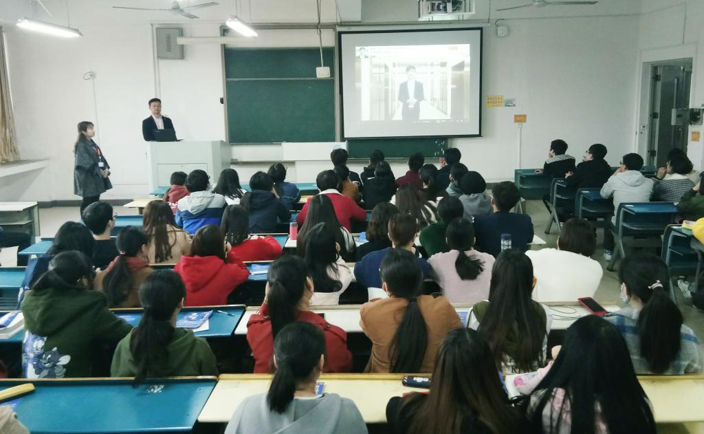 11月10日下午,应人文学院邀请,平安普惠经理黄永磊等一行在新知楼A410教室为毕业班同学举办了专场招聘会。