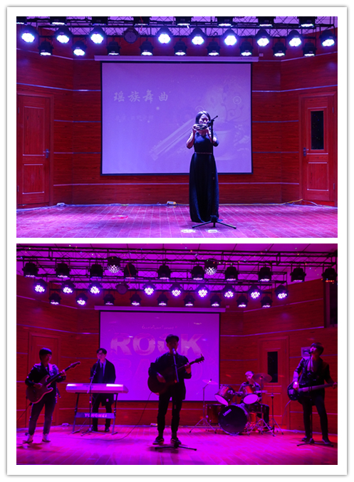 灯火骤灭,踩着律动的节奏,女生热舞率先燃爆全场,男生酷炫的机器人舞步紧随其后,流畅明快的街舞和节奏停歇的机器舞配合完美,引得现场掌声连连。男女深情对唱《那年青春,我们正好》,曲调婉转悠扬,触动在场观众心底最柔软的地方。与流传千古的《西厢记》不同,小品《东厢记》大胆采用反串形式,金句频出,令观众忍俊不禁。法学专业老师田野的口琴独奏《瑶族舞曲》,一瞬间将大家带到雾气缭绕的山林仙境,感受人与自然和谐统一的美妙意境。舞蹈《三生情》唯美轻盈,舞姿曼妙,令现场观众如痴如醉。23 minutes乐队倾心演奏《rocking with the best》电子琴、架子鼓、吉他的结合,伴着铿锵有力的男声将晚会推向高潮。话剧《桃花源》的精彩表演、朗诵和手语舞《筑梦远航》同样惊喜连连,在欣赏之余又让大家感受到了梦想和坚持的力量。晚会在青春昂扬的《红日》声中落下帷幕。