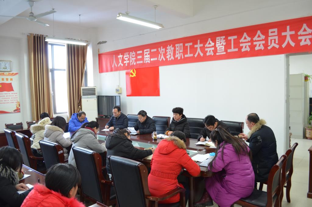 1月10日下午,人文学院在学院会议室隆重召开三届二次教职工大会暨工会会员大会。人文学院党政领导、全体教职工参加会议。会议由副院长李晓东主持。