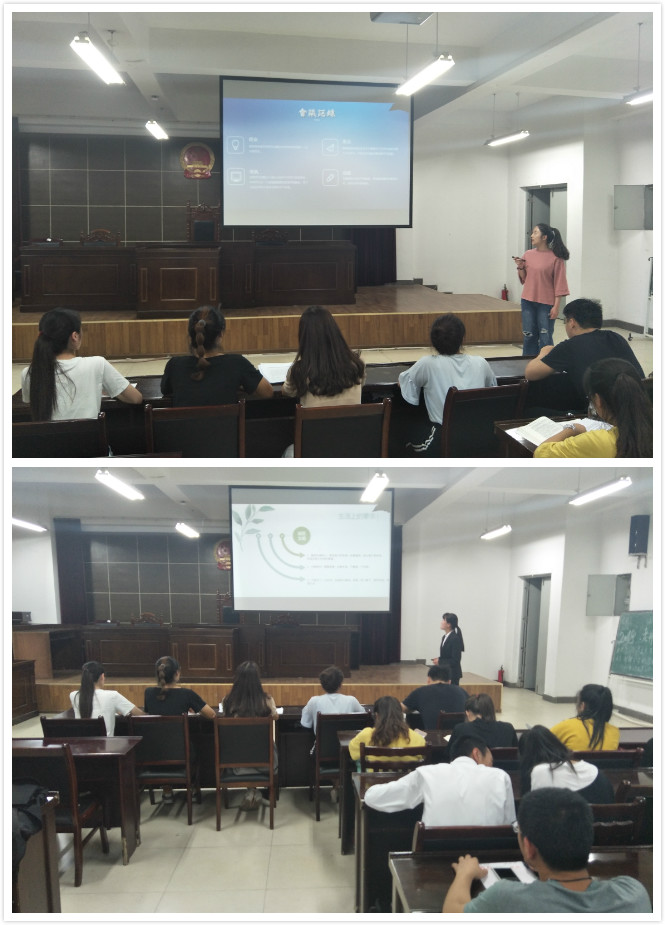 6月4日晚,人文学院在模拟法庭开展2017级“诚信·文明”主题教育先进班级评选会,2017级7个班级参与评选。