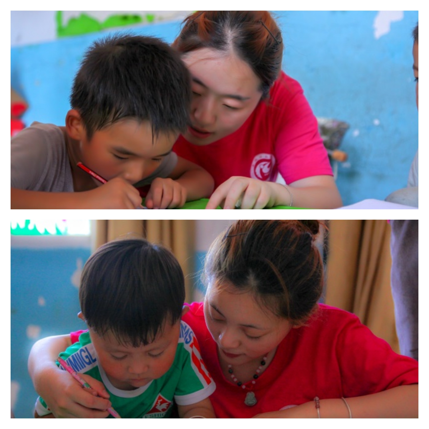 志愿者们依据园内情况为留守儿童们设计了体育、美术、礼仪等特色课程。园内的孩子们对于志愿者们的到来,既意外又兴奋。面对大哥哥大姐姐,孩子们一开始显得很局促。志愿者们通过园长的介绍,了解到园内大部分的孩子都是留守儿童,生活由爷爷奶奶照顾,暑期的时候可以送到园内由老师进行统一照顾,减少一些负担。