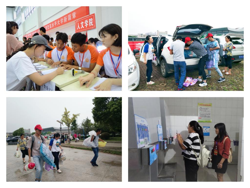 迎新第一天,17级法学鲍腾飞六点起床洗漱后换上志愿者服装便来到体育馆门口准备迎新前的工作。“这是我进入大学第一次迎接新生,我主要负责的是检录信息,虽然昨天已经练习过了,但是还是要来早点,做好充足准备。”鲍鹏飞说道。住在东十的汪学银同样早早地抵达了迎新地点,“我刚来报道时,学长也是这样等我的。”汪学银笑着说,“有意思的是接女生去宿舍时发现她的被子和室友的弄混了,然后跑到西园4栋楼帮助她拿被子到宿舍,来回跑了几次,虽然很累,但心里感到很满足,这是我第一次为新生服务。”