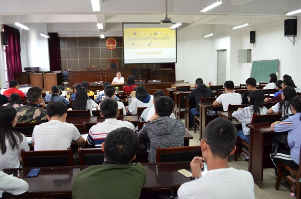 9月26下午,人文学院邀请安徽知秋律师事务所主任宫鉴,在模拟法庭为法学专业学生作了题为《法律职业与法科学生的人生选择》的辅导报告。报告由法学专业负责人宣刚主持。
