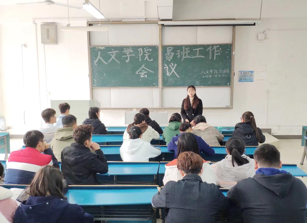 11月30日中午,人文学院在新知楼A108教室召开易班工作会议。辅导员曹珊珊、学院易班工作站成员和各班级宣传委员参加了此次会议。会议由学院易班工作站站长韩神贵主持。
