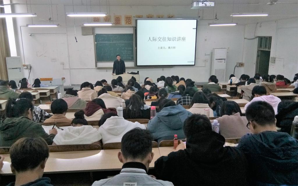 12月1日下午,人文学院在求知楼A102举办人际交往知识讲座。讲座由汉语言文学教研室主任姚大怀主讲,2018级全体新生聆听了讲座。