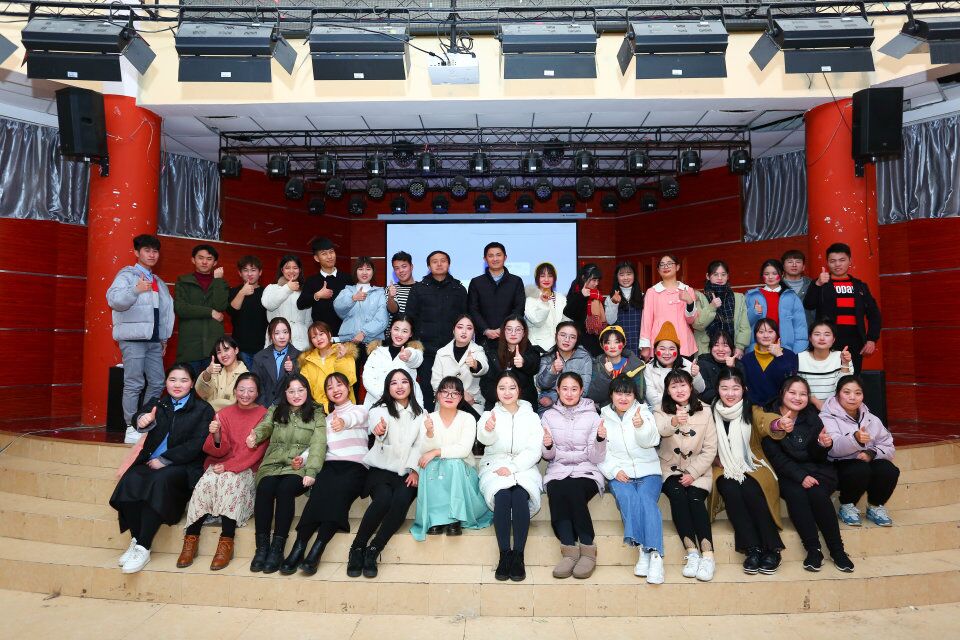 12月18日晚,人文学院2016级汉语言文学卓越班话剧展演课程在老学术报告厅举行汇报演出,指导老师姚大怀、和建伟与辅导员曹珊珊到场观看演出。