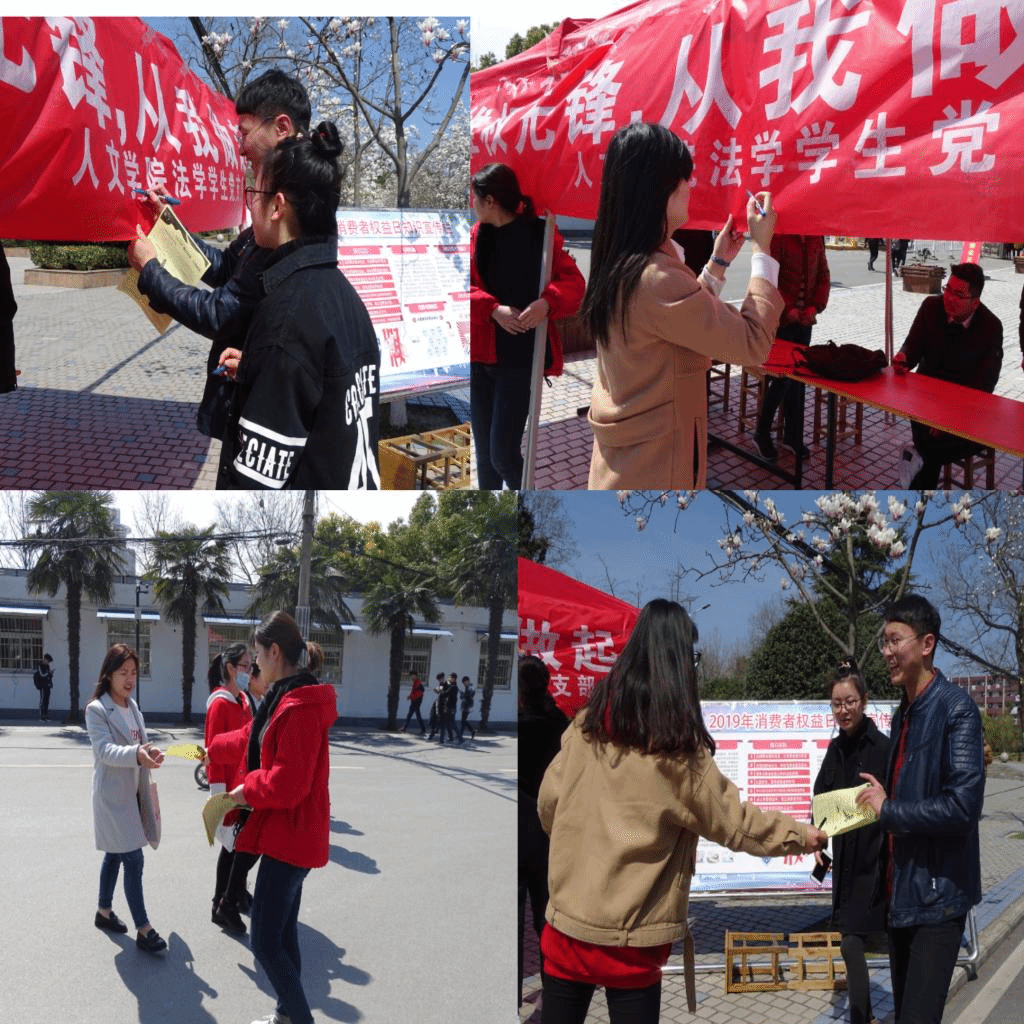 为增强我校师生的维权意识,进一步加深对消费者权益的了解,构建文明和谐校园,3月15日,人文学院法学学生党支部在东区小广场开展“3.15”消费者权益保护日宣传主题党日活动。