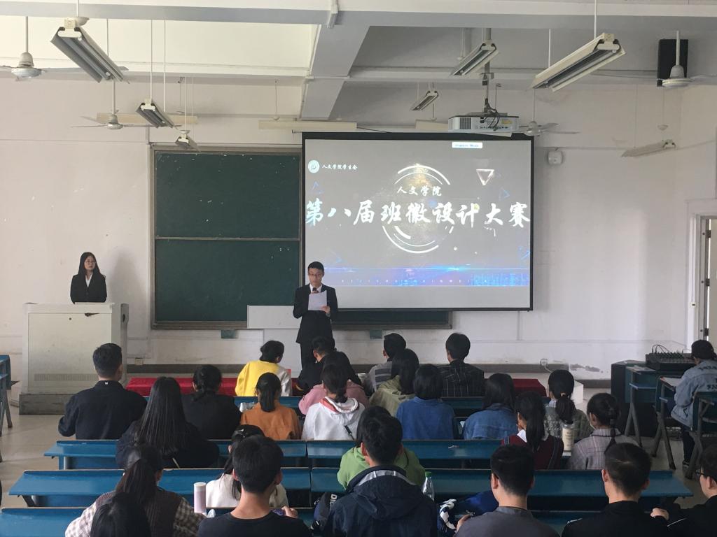为增强班级凝聚力,培养学生集体荣誉感,4月14日下午,人文学院在新B301教室举办第八届班徽设计大赛。校学生会媒体运营部部长陈涛,校新媒体中心图片社社长余良,外国语学院学生会宣传部部长占庆梦,生命与健康科学学院学生会宣传部部长钟先鹏担任本次大赛评委。