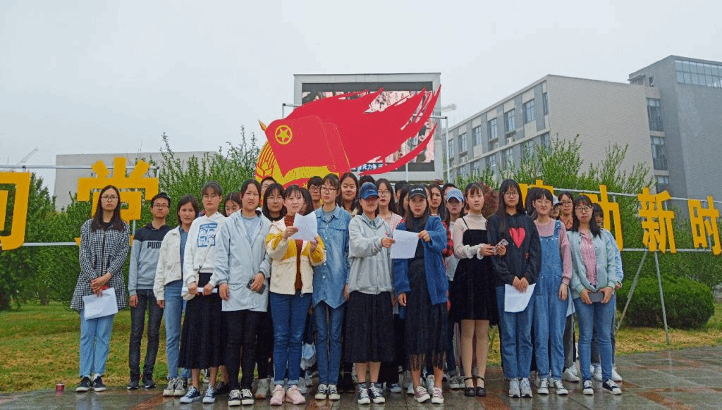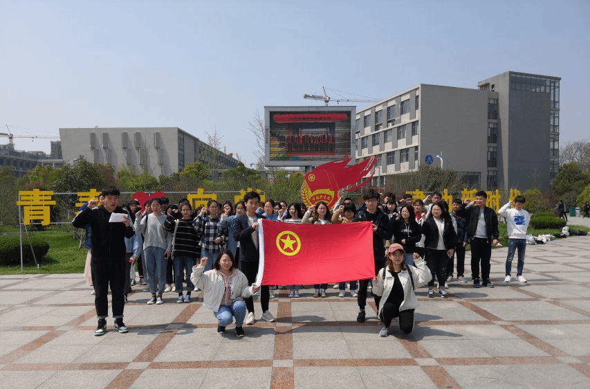 团旗下的演讲 清明节前,编辑出版171、172团支部共59名同学在西区小广场共同举行了“青春心向党,建功新时代”主题团日活动。活动在共青团团歌振奋的旋律中拉开序幕,在编辑172班王明蕾的关于当代青年团员的责任与担当的演讲中达到高潮。最后,活动在全体团员铿锵而坚定的齐声宣誓中结束。铮铮誓言展现出共青团员们积极向上的活力与朝气。