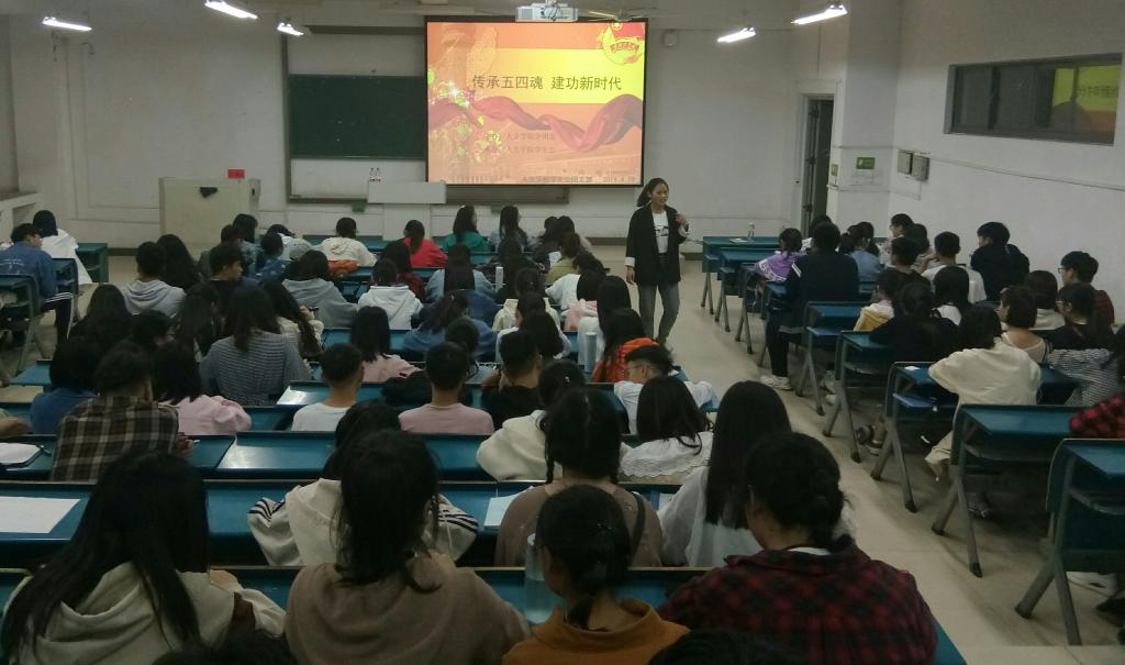 “五四”主题团课4月14日晚,人文学院举行“传承五四魂 建功新时代”主题团课活动。人文学院分团委委员尤肖肖为学生们作题为《传承五四魂建功新时代》团课演讲。人文学院2018级全体学生参加活动。极具感染力的演讲,激发了同学们深藏的爱国热情,多次强调的“五四精神”,深深印在每位同学的心里。