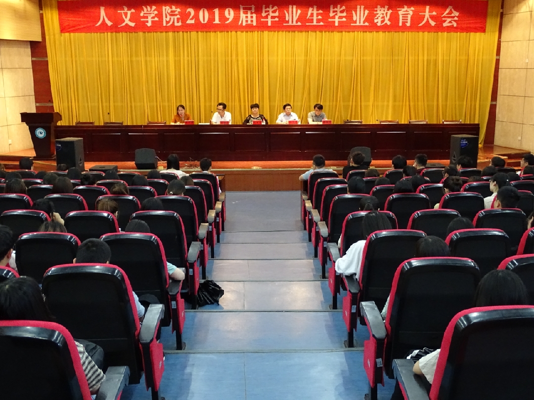 5月29日下午,人文学院2019届毕业生毕业教育大会在新图书馆二楼报告厅举行。人文学院党总支书记杜士凤,院长陈传万,副院长李晓东,院长助理骆绪刚,党总支秘书、分团委书记李沙娜出席大会。人文学院2019届全体毕业生参加大会。会议由杜士凤主持。