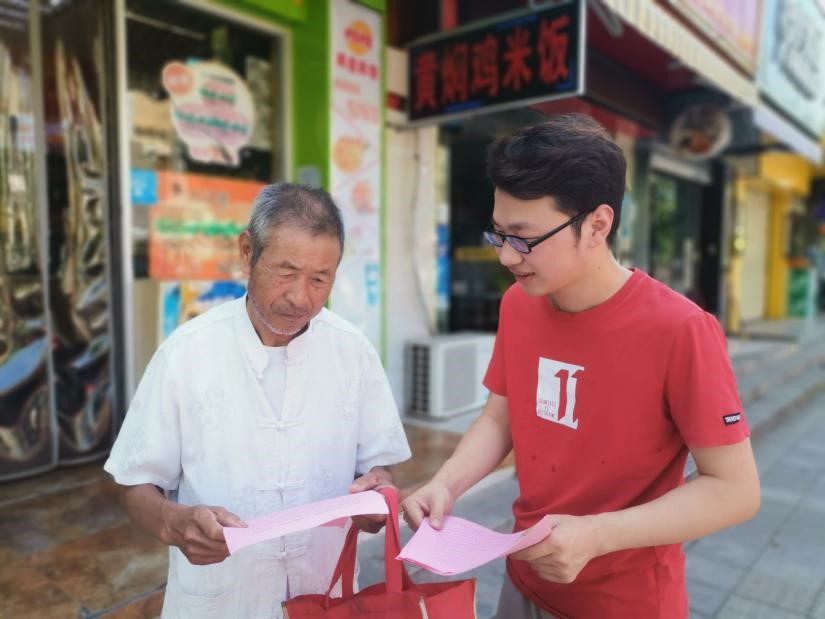 为确保活动顺利进行,活动开展前,队长王婉婷带领队员们制定了详细的活动计划,合理分配任务,队员们沿街发放法律常识宣传单,积极宣传法律知识,解答法律疑问。过程中,常有路人会向实践成员主动询问、了解各种法律问题,成员们都耐心的一一解答。其中,一位六十多岁的老人向实践成员询问了关于遗产继承和消费者权益方面的一些问题,实践成员根据所学知识,结合法律宣传单向老人进行了讲解,并告诉老人,宣传单上就有关于消费者权利和维权的有关内容,在需要维护消费权益时可以参考宣传单上的5点维权手段,依法维护自身权益。