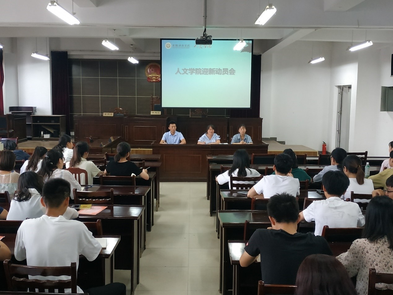 随后,人文学院在模拟法庭召开2019年迎新生动员大会,动员部署学院迎新工作。学院党支部秘书李沙娜,辅导员曹珊珊、焦雪松出席会议。全体学生党员、学生会全体成员和各班级班长参加会议。