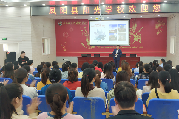 余宪龙致欢迎辞,介绍了凤阳阳光国际学校的成立背景、历史发展、学校规模、办学理念、工作核心、师资队伍以及学校的发展愿景。