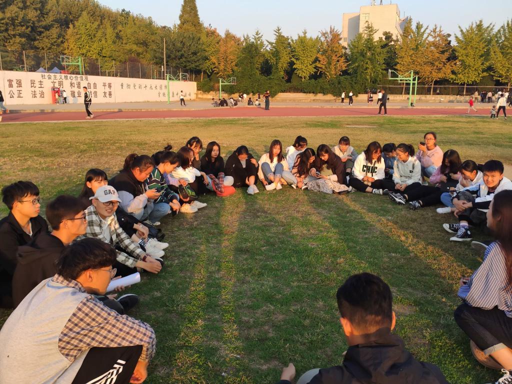 讲座结束后,心联成员带领新生在东区草坪上召开交流会。新生们就自己入学以来在学习、生活、工作中的感想、迷茫以及困惑进行了交流和探讨,优秀的学长、学姐们结合自身实际,为新生提出了不少好的意见和建议。交流会在温馨的游戏中结束。