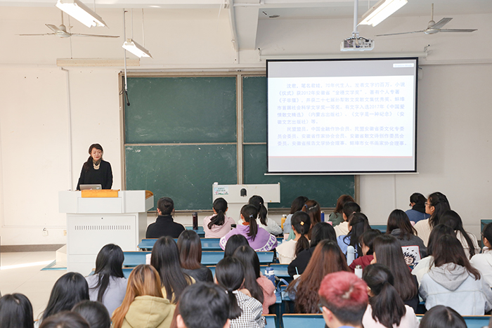 11月7日,人文学院邀请作家沈君,在新知楼A206教室与2018级汉语言文学专业全体学生,进行了面对面的文学交流与经验分享。