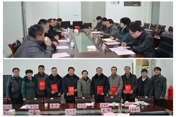 为提升法学卓越班人才培养质量,落实“双导师制”,1月8日下午,人文学院在学院会议室举行聘任仪式,聘请凤阳县法律实务部门工作人员,担任法学专业学生校外实习实训指导教师。凤阳县人民法院刑庭庭长汪凤泉、民二庭庭长桂斌、民一庭庭长陈传利、刑庭副庭长杨春权,凤阳县政府法制办副主任詹伯武、凤阳县法律援助中心主任代树东、凤明律师事务所主任孙广超,人文学院院长陈传万、党总支书记杜士凤、副书记王伟、副院长李晓东、院长助理骆绪刚出席会议。会议由陈传万主持。
