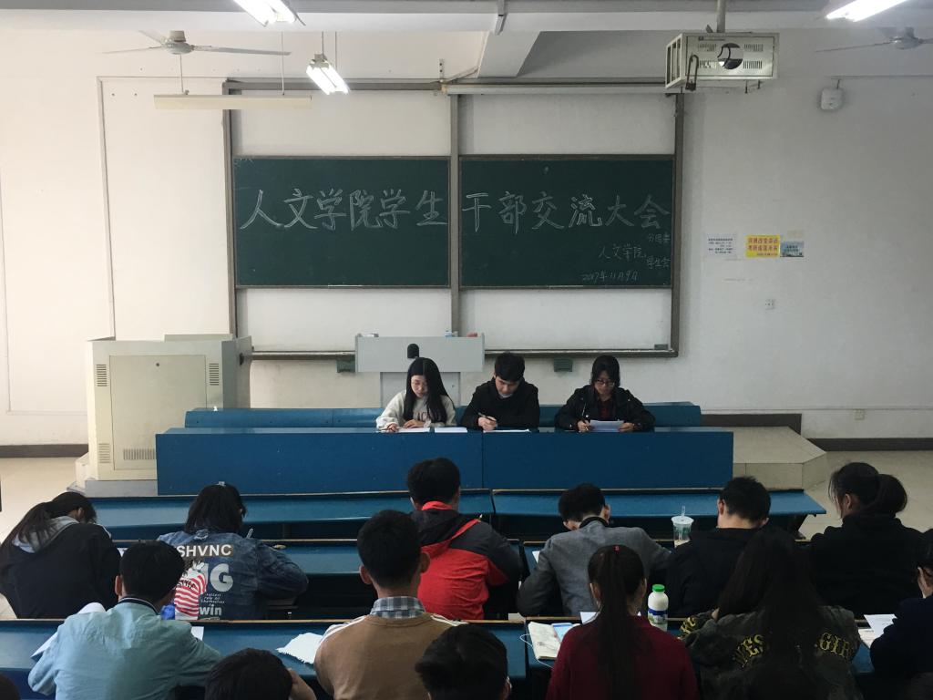 11月9日中午,人文学院在新知楼A210教室召开了学生干部交流大会。人文学院学生会副主席万李康、宣传部部长许燕、网传部部长熊凯以及16、17级班长和宣传委员参加会议。大会由万李康主持。