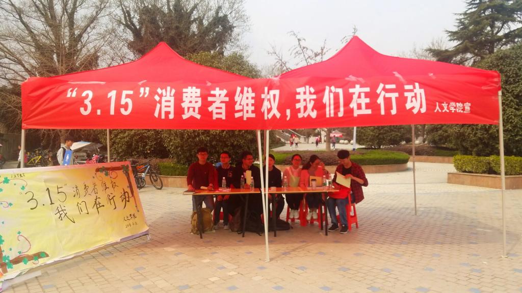 春意盎然,玉兰花开。在第35个国际消费者权益日来临之际,人文学院在东区小广场开展“3·15消费者维权,我们在行动”的公益宣传活动。人文学院法学学生党支部全体党员具体负责组织本次公益活动。