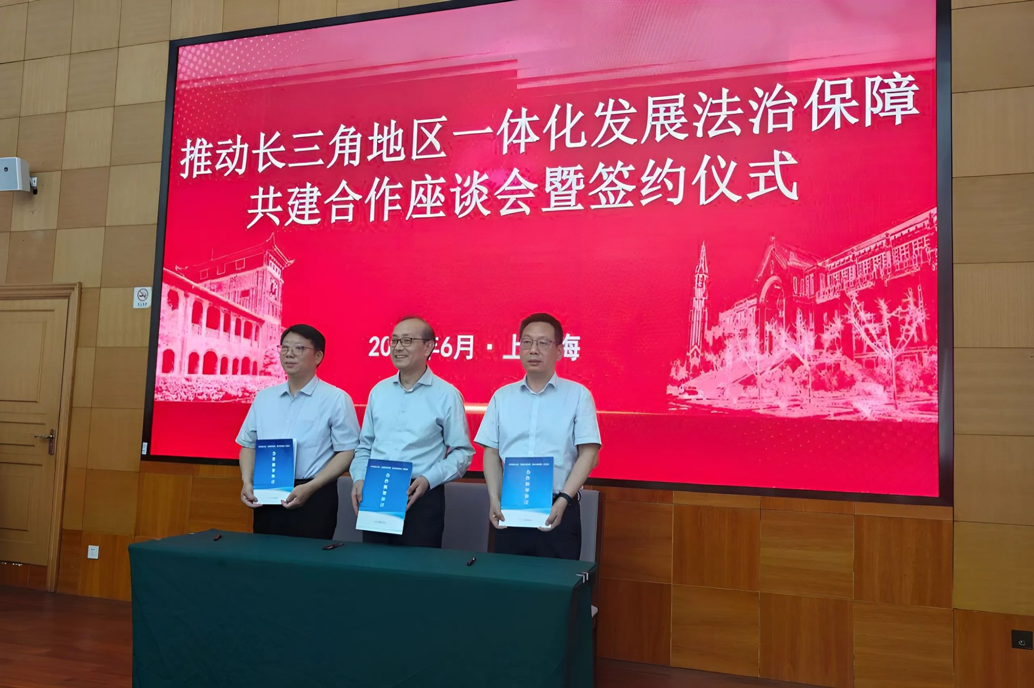 6月5日下午,校党委副书记、院长李升和,校党委委员、副院长王玉和前往华东政法大学长宁校区,出席推动长三角地区一体化发展法治保障共建合作座谈会暨签约仪式。华东政法大学党委副书记、校长叶青,党委副书记、副校长虞潇浩,相关职能部门及二级学院负责人;滁州市中级人民法院党组书记、院长刘猛生,南谯区人大常委会党组书记、主任王沁,南谯区委常委、区政府常务副区长吴磊等出席仪式,仪式由虞潇浩主持。