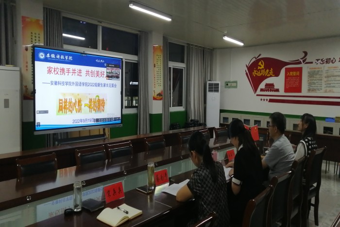 为促进家校协同育人,凝聚教育合力,9月20日晚,外国语学院通过腾讯会议举行2022级新生家校线上见面会。学院院长刘萍、党委书记蔡为青、党委副书记张海亮、新生辅导员宋兵兵、张薇薇以及180余名2022级新生家长参加会议,会议由张海亮主持。