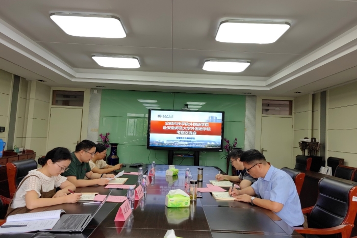 8月30日上午,外国语学院党委副书记张海亮、副院长洪民赴安徽师范大学外国语学院开展调研,交流师范类专业认证及毕业生就业工作。安徽师范大学外国语学院副院长许炳坤、英语系主任张荷、辅导员张玉楠、教学秘书汪碧颖等出席了本次交流会。会议由许炳坤主持。