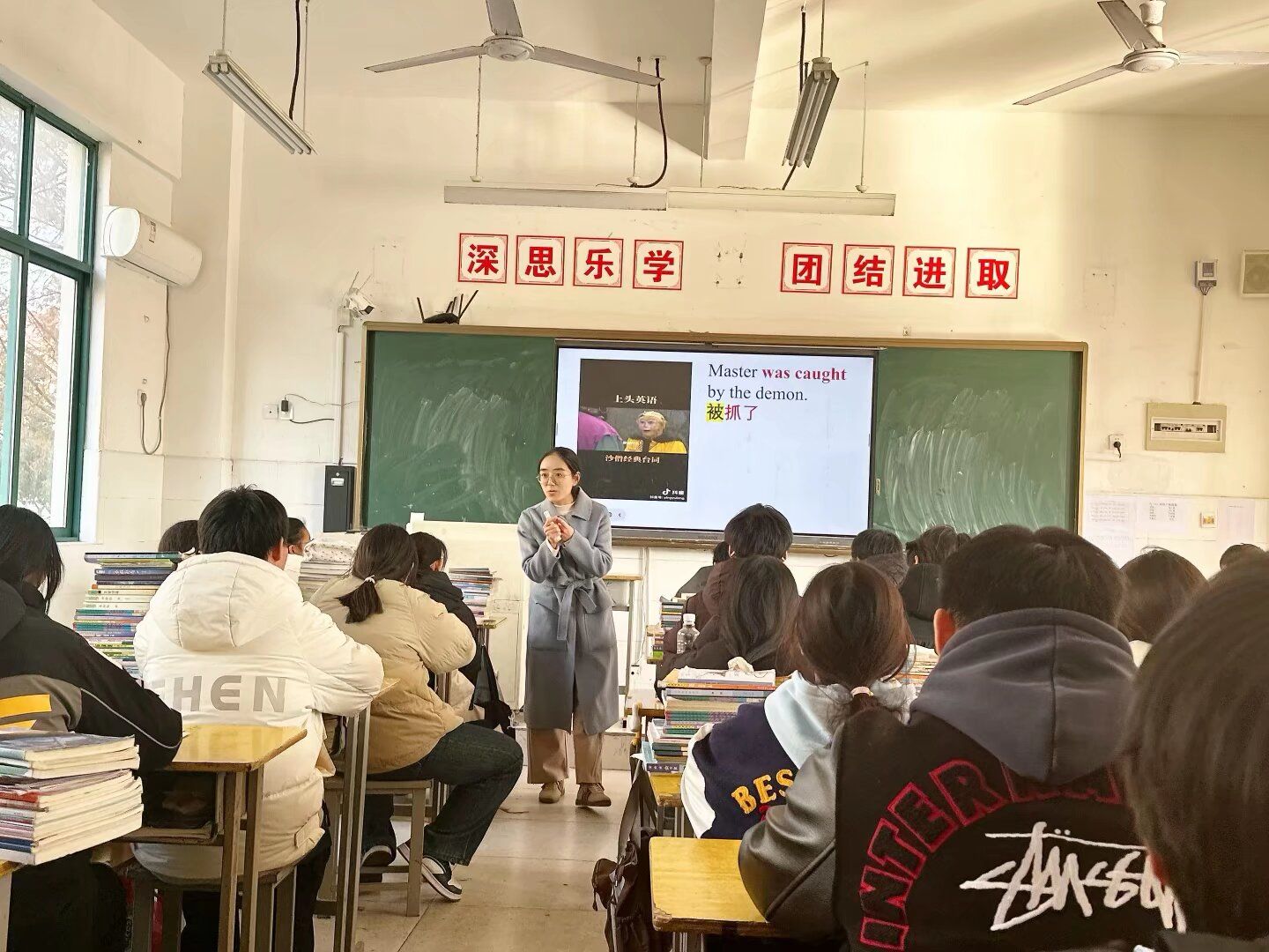 在九年级二班的教室里,一场别开生面的示范课正在上演。该示范课由安徽科技学院“大中小课程思政一体化示范课程”团队核心成员、党员教师罗筱维主讲。罗老师将文化认同与价值引领巧妙融入英语课堂,通过生动的语言和互动式的教学资源,不仅传授了语言知识,更激发了学生们的文化自信心与民族自豪感,让在场观摩的中学教师深受启发。