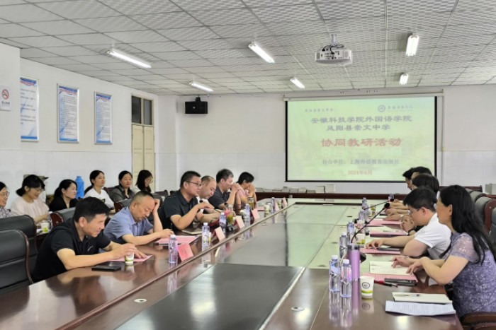 6月19日,在积极推动教育资源共享和英语教学改革的背景下,外国语学院与凤阳县崇文中学、凤阳县实验中学成功举办了以“初中英语教师专业能力发展”为主题的协同教研活动。此次活动旨在加强高校与地方中学在英语教育领域的交流与合作,共同提升英语教师的专业能力和教学质量。