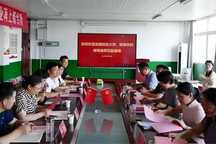 2024年6月14日下午,蚌埠学院外国语学院党委书记赵睿、院长赵生学和安徽财经大学文学院副院长张俊梅一行18人到外国语学院进行交流本科教育教学审核评估工作。外国语学院党政领导、教研室主任、专业负责人等参加了交流会。交流会由外国语学院院长刘萍主持。