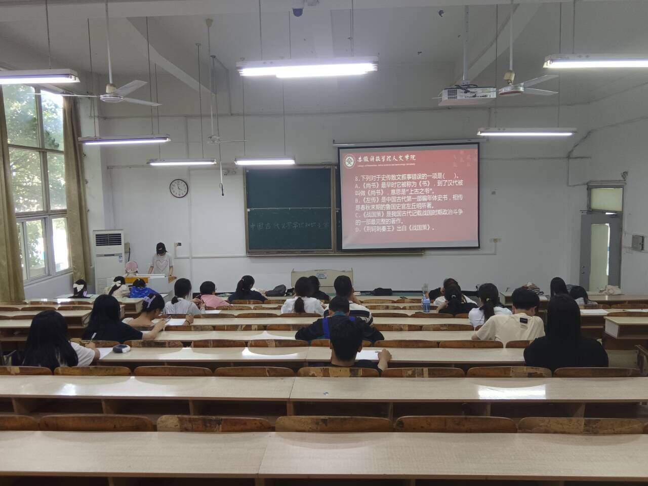 为推动我校学生深入学习文学知识,强化青年学生传承创新中华优秀传统文化的使命意识,浓厚校园人文气息,5月22日下午,人文学院在求知楼A101教室,面向23级全体学生举办中国古代文学常识知识竞赛。