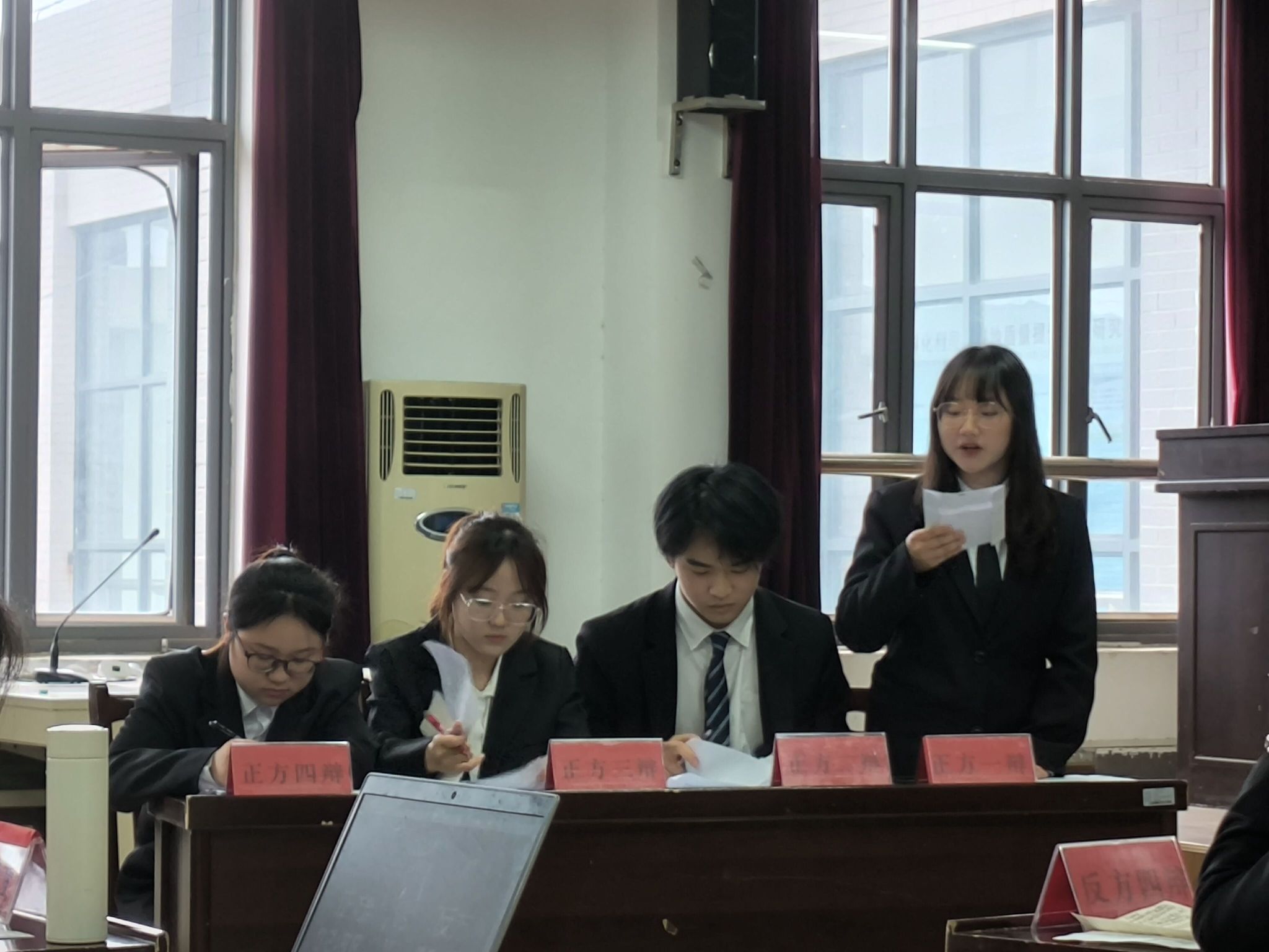 为推进校园法治文化建设,促进法学专业学生理论学习与实践锻炼相结合,提高专业素养和法律实务能力,4月14日下午,由人文学院法学社承办的安徽科技学院2024年“未来律师辩论赛”决赛在模拟法庭举行。本次辩论赛由法学系主任张晓云担任教师评委,史梦洁、李旭、方巧慧担任学生评委;共有4组参赛队伍参与决赛角逐。