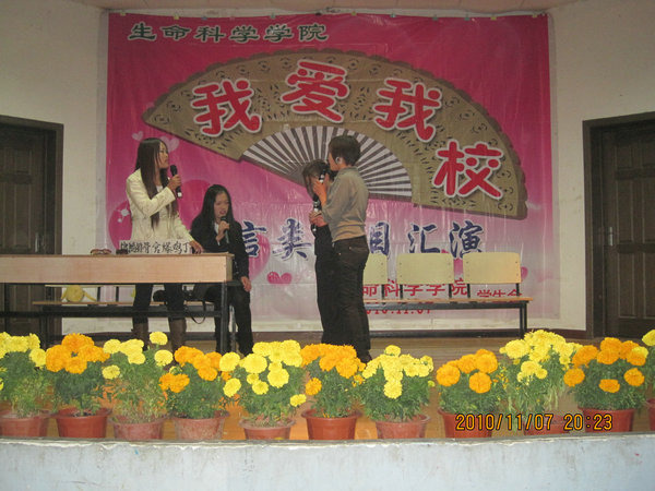 11月7日晚,生命科学学院在学术报告厅举办第四届“我爱我校”语言类节目专场演出。经济管理学院许欣老师、动物科学学院李焱老师、学院王传林老师、校学生会副主席兼生活部部长华健、校学生会文艺部部长兼大学生艺术团团长蒋皓、原学院学生会主席鲍宽旭,原学院学生会副主席郭超等应邀出席并担任评委。学院团总支彭丽萍老师、张帆老师以及兄弟院部学生会干部等也观看了本次演出。