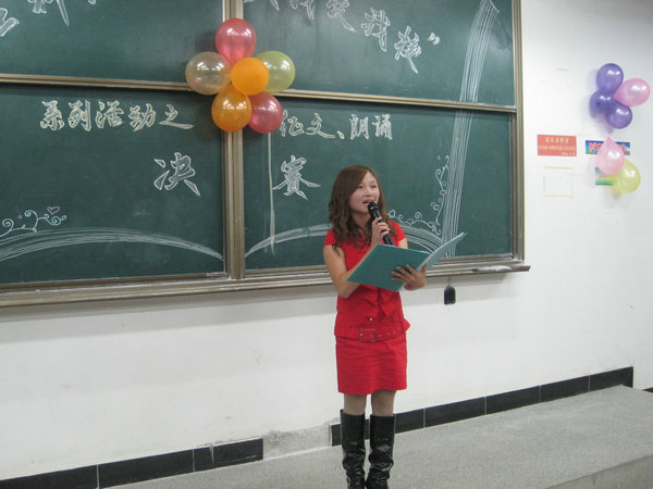 通过初赛、复赛的两轮筛选,共有10名选手进入决赛。在比赛过程中,选手们精神饱满,感情真挚,声音抑扬顿挫,举止自然大方,他们通过深情朗诵表达对母校的热爱和对母校60岁生日的真挚祝福。现场观众们的掌声阵阵,气氛活跃热烈。其间,特邀嘉宾章梦雅一曲深情的演唱也为本次比赛增添了不少光彩。最终,来自09园教(1)班的仰梅与10生科(3)班的张娣荣获一等奖。