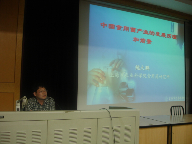鲍研究员从中国食用菌产业的发展历程、中国食用菌产业的发展趋势、中国食用菌产业的研发趋势、中国食用菌产业科研体系简介等几方面介绍了中国食用菌产业的发展历程和前景以及上海市农科院食用菌研究所从事食用菌研究的有关情况。