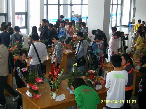 4月19日,生命科学学院2009年度艺术插花作品展在校新图书馆一楼大厅隆重举办,副院长刘正出席并参观了本次作品展。