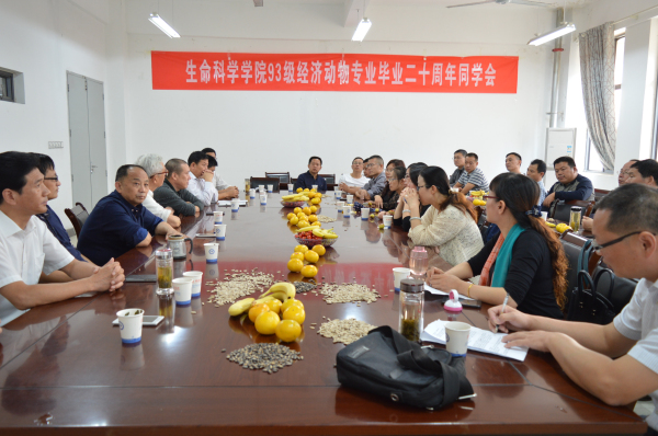 10月2日,生命科学学院93级经济动物专业校友从祖国各地齐聚母校举行毕业二十周年聚会。生命科学学院在学院会议室组织师生联谊会,生命科学学院创始人之一、应用生物系(生命科学学院前身)第一届系主任李位三老师应邀出席联谊会,生科院前任和现任领导和部分教师代表参加联谊会。